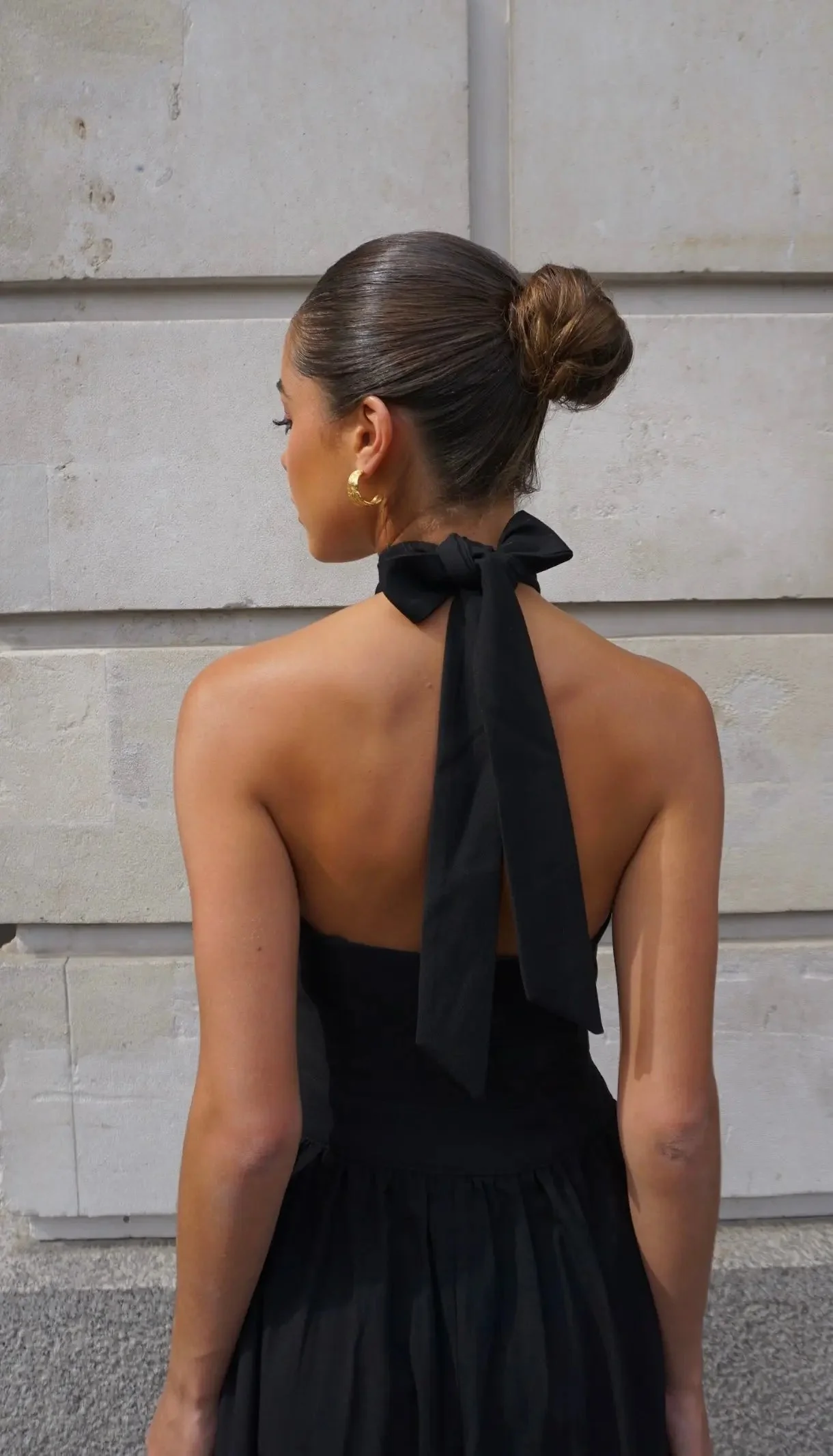 The beloved Harper silhouette in deep black ā a stunning midi dress with elegant halter neckline and low back detail that makes every occasion feel more special. Wear it to a wedding, a birthday dinner or anywhere you want to feel completely effortless and completely beautiful.